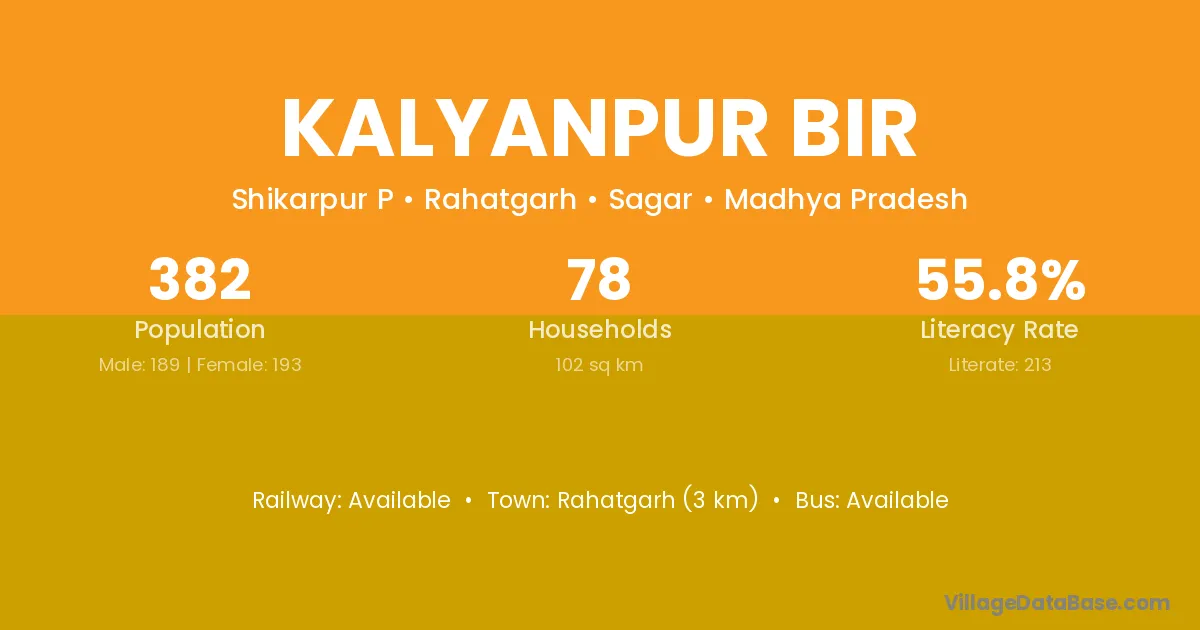 Rahatgarh (3 km) is the nearest town to Kalyanpur Bir village for major economic activities and is located approximately 3 km away.