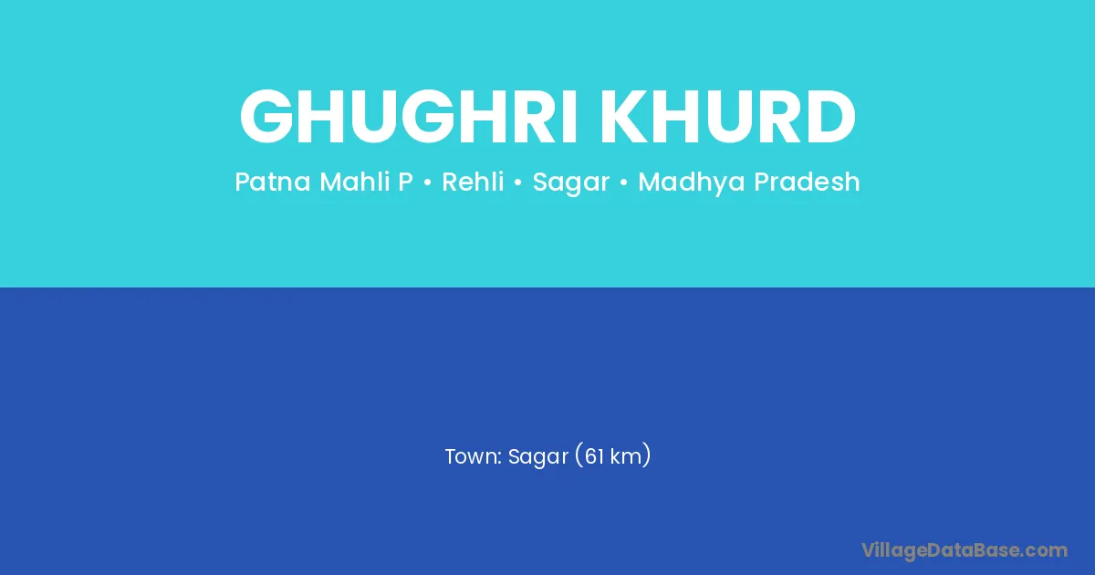Sagar (61 km) is the nearest town to Ghughri Khurd village for major economic activities and is located approximately 61 km away.