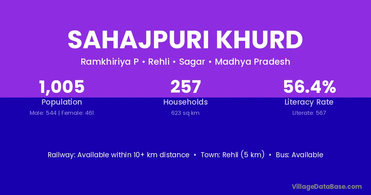 Sahajpuri Khurd village has a total population of 1,005 people, of which 544 are males and 461 are females.