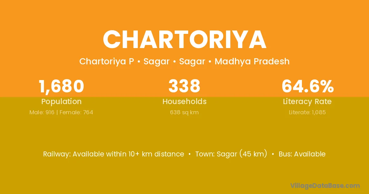 Sagar (45 km) is the nearest town to Chartoriya village for major economic activities and is located approximately 45 km away.