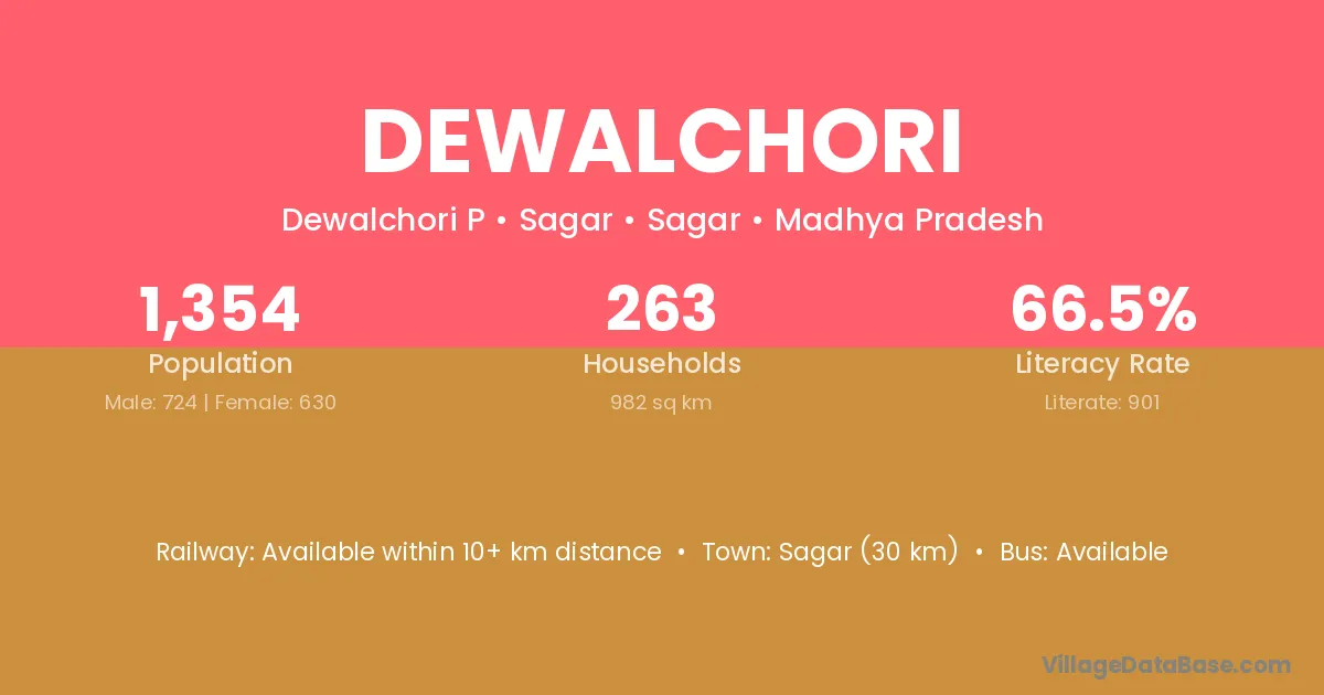 Sagar (30 km) is the nearest town to Dewalchori village for major economic activities and is located approximately 30 km away.