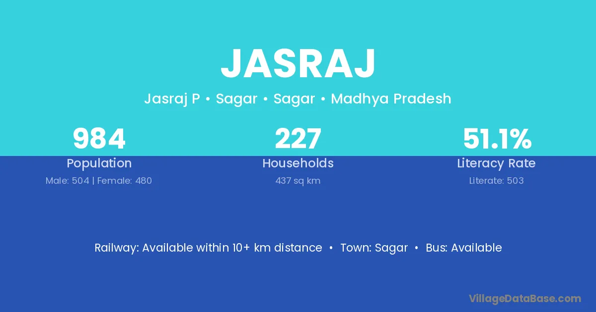 Sagar is the nearest town to Jasraj village for major economic activities
