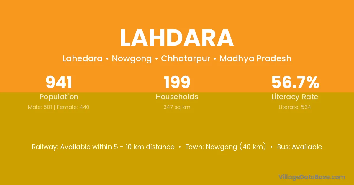 Sagar (11 km) is the nearest town to Lahdara village for major economic activities and is located approximately 11 km away.