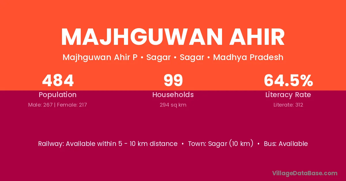 Sagar (10 km) is the nearest town to Majhguwan Ahir village for major economic activities and is located approximately 10 km away.