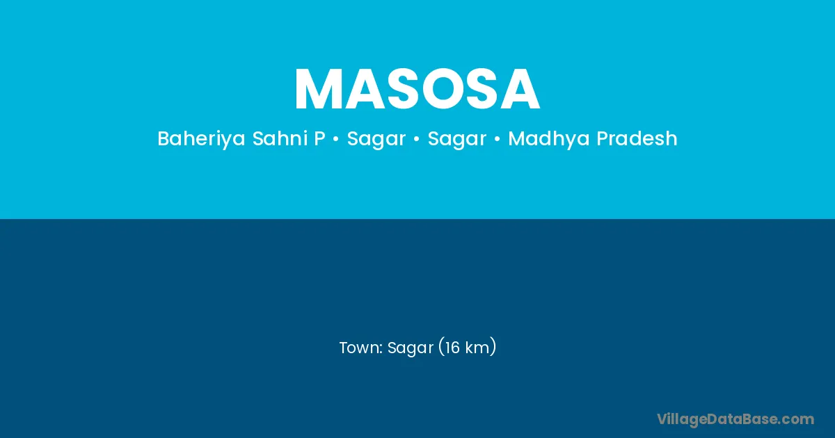 Sagar (16 km) is the nearest town to Masosa village for major economic activities and is located approximately 16 km away.