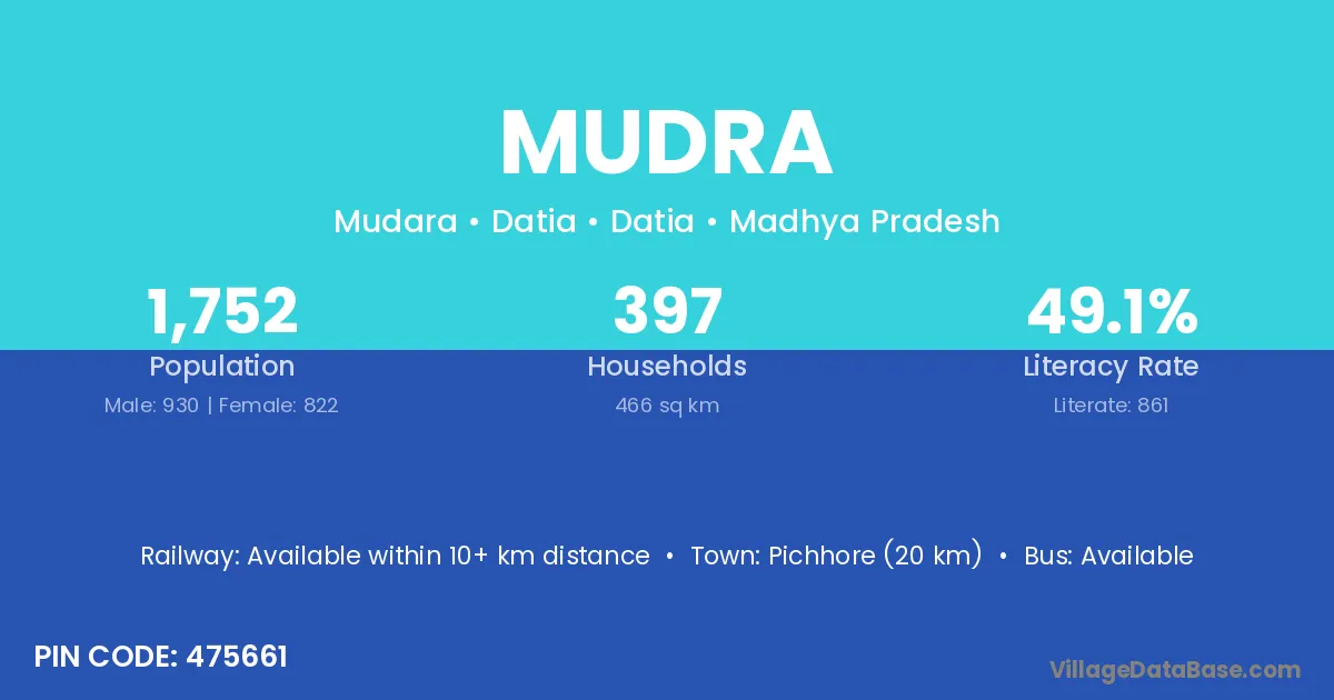 Sagar (20 km) is the nearest town to Mudra village for major economic activities and is located approximately 20 km away.