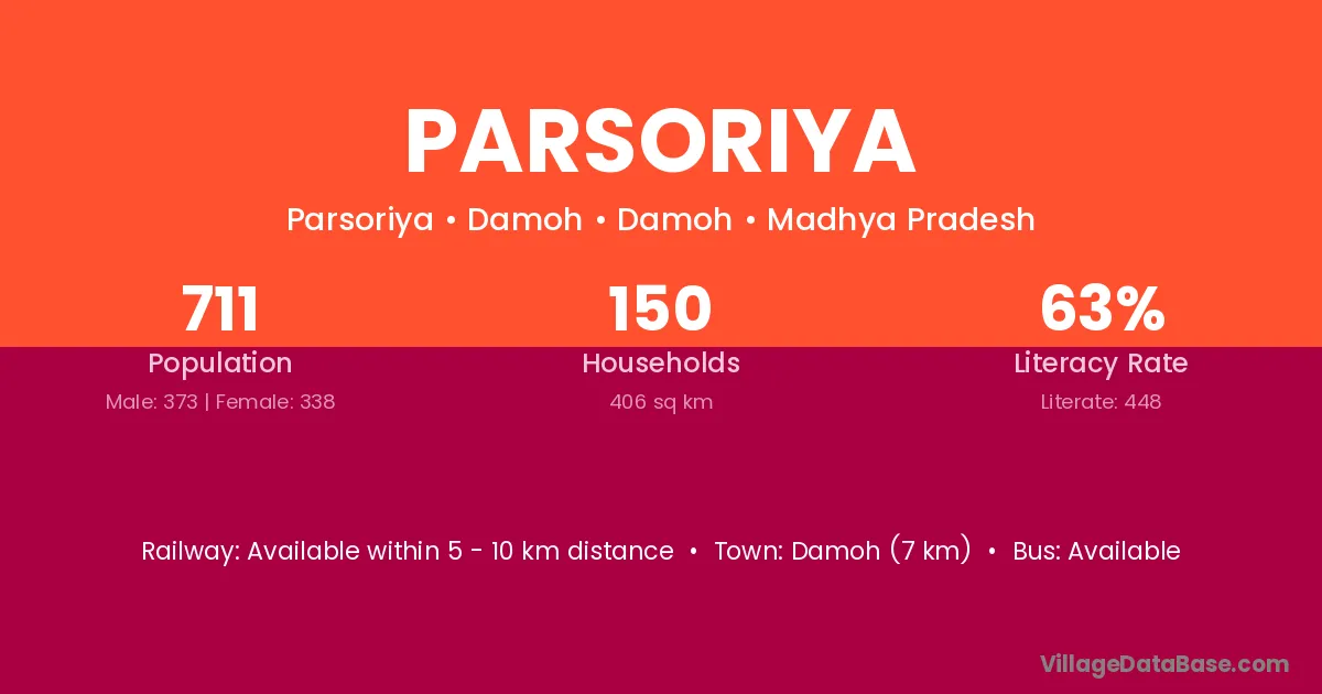 Sagar (23 km) is the nearest town to Parsoriya village for major economic activities and is located approximately 23 km away.