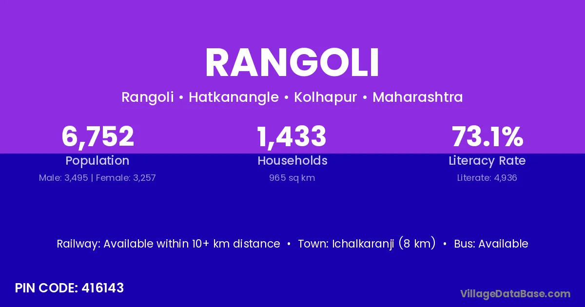 Shahpur (15 km) is the nearest town to Rangoli village for major economic activities and is located approximately 15 km away.