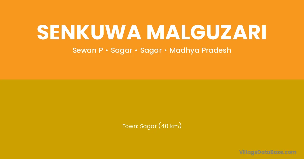 Sagar (40 km) is the nearest town to Senkuwa Malguzari village for major economic activities and is located approximately 40 km away.