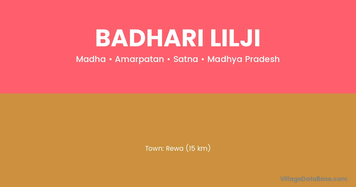 Rewa (15 km) is the nearest town to Badhari Lilji village for major economic activities and is located approximately 15 km away.