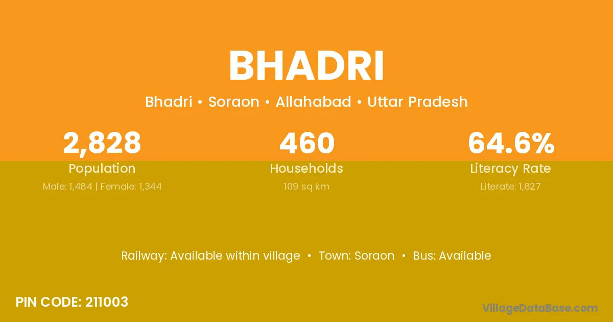 The literacy rate of Bhadri village is 69.47%. Male literacy stands at 81.15% and female literacy at 56.72%.