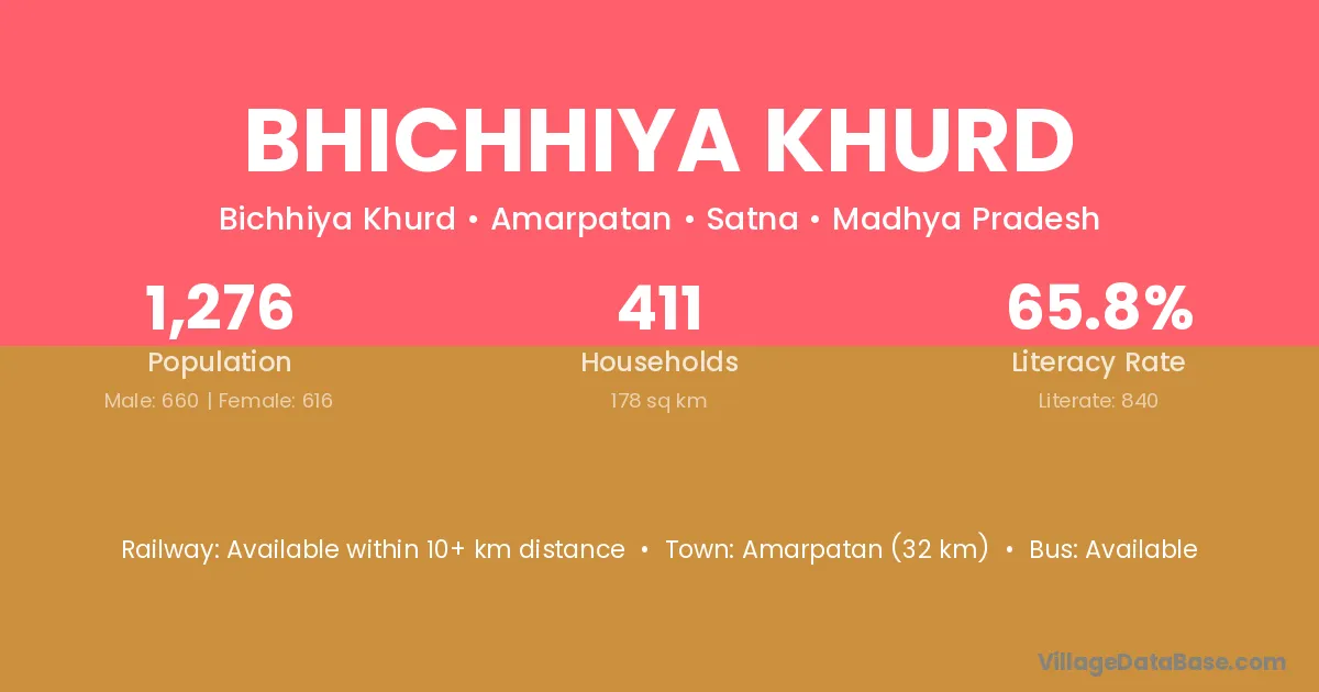 Bhichhiya Khurd village has a total population of 1,276 people, of which 660 are males and 616 are females.