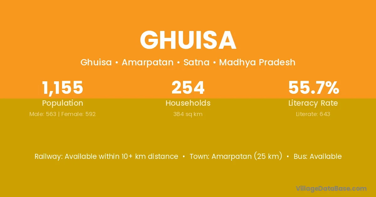 Amarpatan (25 km) is the nearest town to Ghuisa village for major economic activities and is located approximately 25 km away.