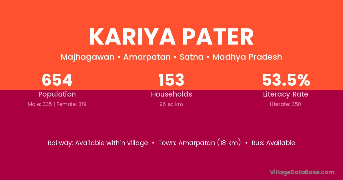 Amarpatan (18 km) is the nearest town to Kariya Pater village for major economic activities and is located approximately 18 km away.