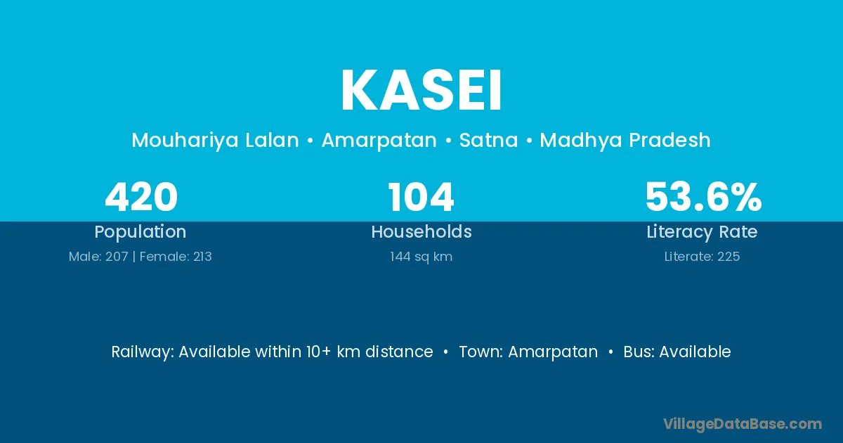 Kasei village has a total population of 420 people, of which 207 are males and 213 are females.