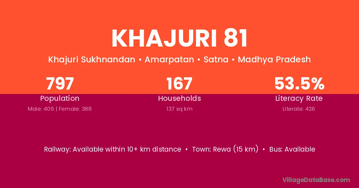 Rewa (15 km) is the nearest town to Khajuri 81 village for major economic activities and is located approximately 15 km away.