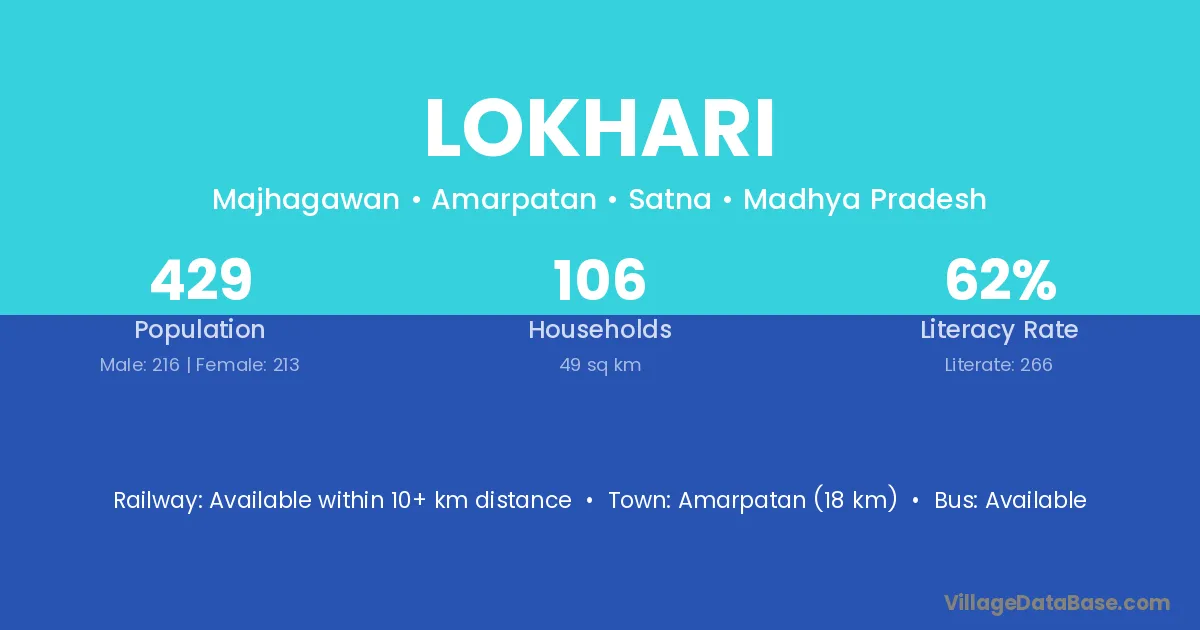 Amarpatan (18 km) is the nearest town to Lokhari village for major economic activities and is located approximately 18 km away.
