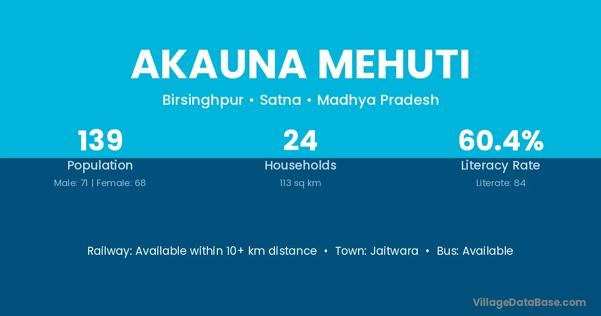 Akauna Mehuti village has a total population of 139 people, of which 71 are males and 68 are females.