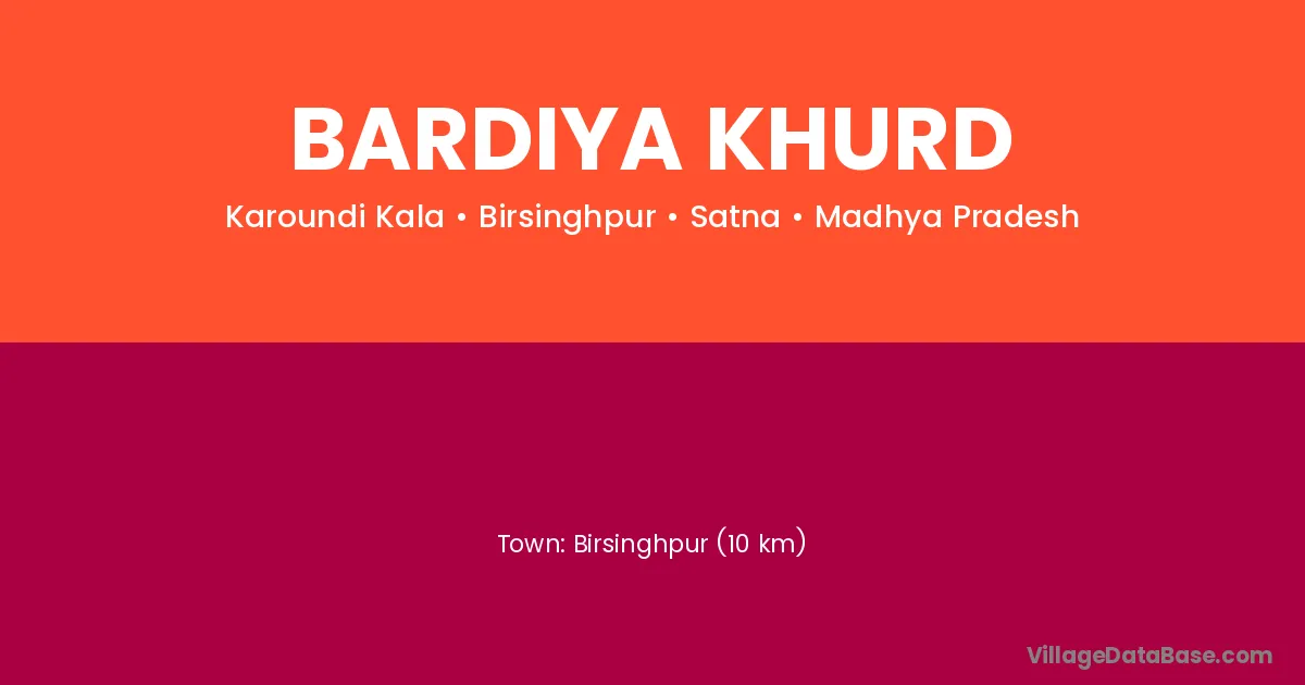 Birsinghpur (10 km) is the nearest town to Bardiya Khurd village for major economic activities and is located approximately 10 km away.