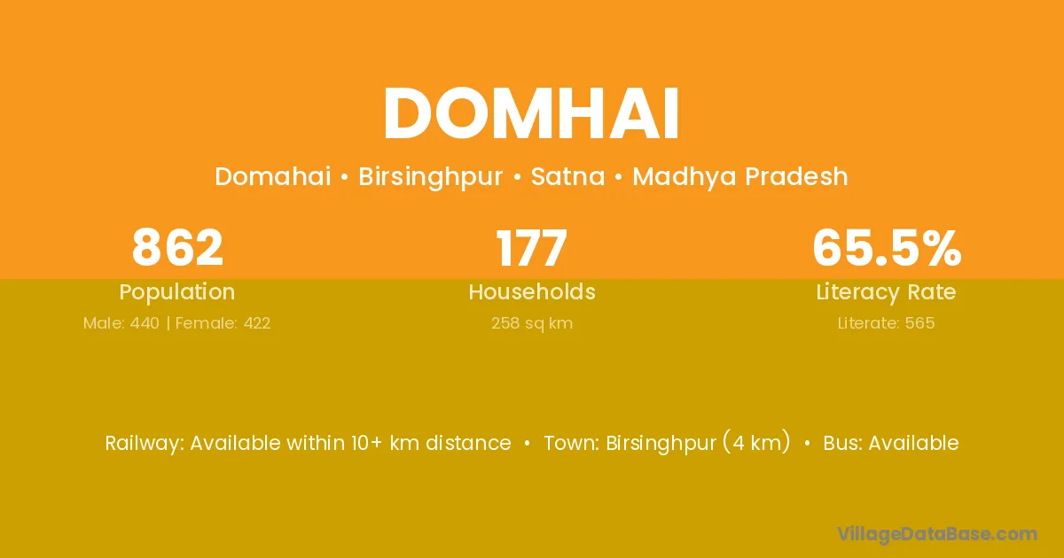Birsinghpur (4 km) is the nearest town to Domhai village for major economic activities and is located approximately 4 km away.