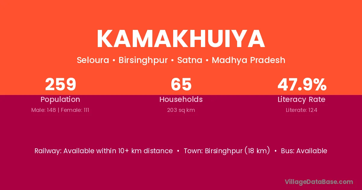 Birsinghpur (18 km) is the nearest town to Kamakhuiya village for major economic activities and is located approximately 18 km away.