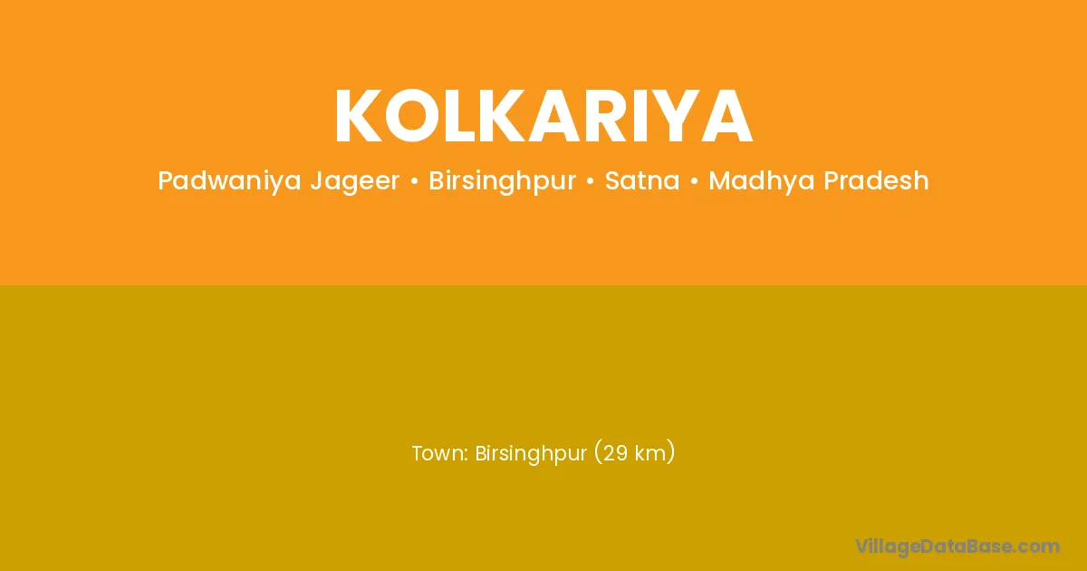 Birsinghpur (29 km) is the nearest town to Kolkariya village for major economic activities and is located approximately 29 km away.
