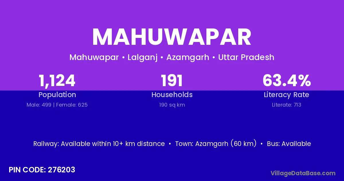 Birsinghpur (3 km) is the nearest town to Mahuwapar village for major economic activities and is located approximately 3 km away.