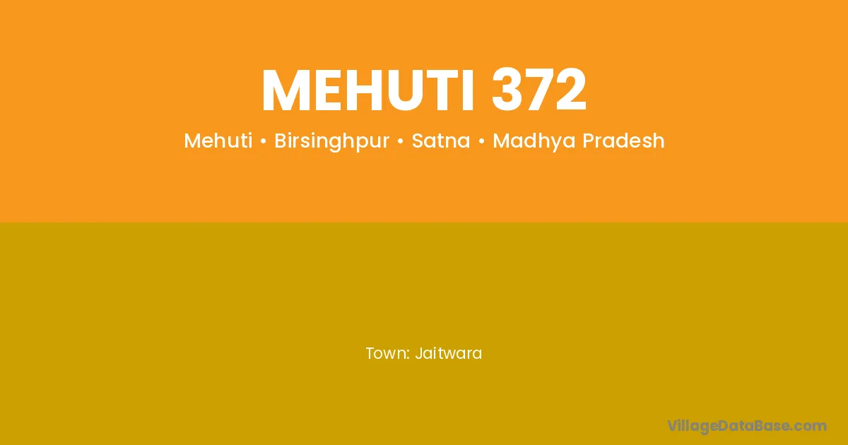 Jaitwara is the nearest town to Mehuti 372 village for major economic activities