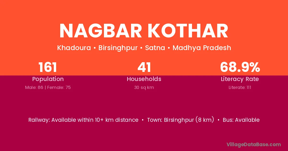 Birsinghpur (8 km) is the nearest town to Nagbar Kothar village for major economic activities and is located approximately 8 km away.