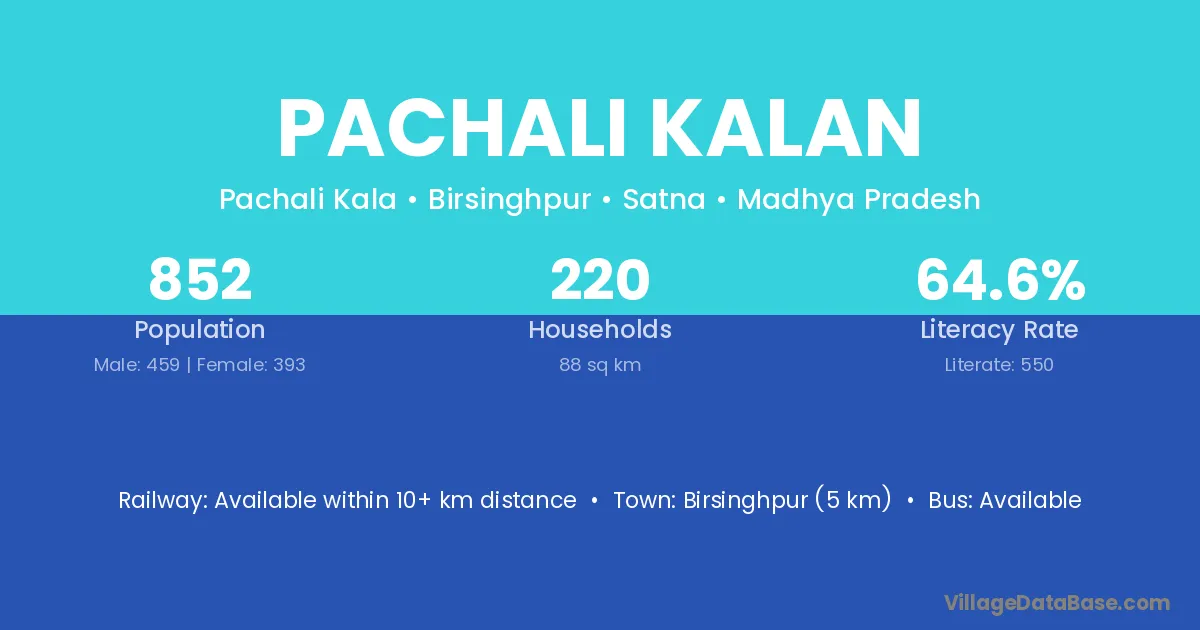 Birsinghpur (5 km) is the nearest town to Pachali Kalan village for major economic activities and is located approximately 5 km away.