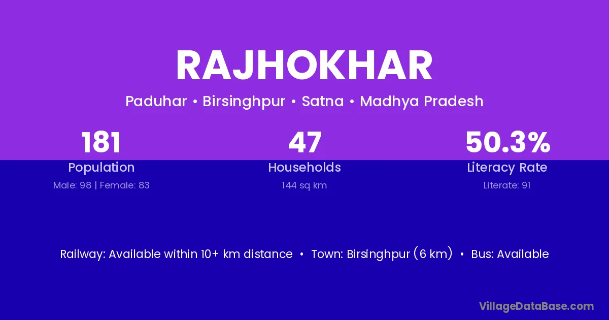 Birsinghpur (6 km) is the nearest town to Rajhokhar village for major economic activities and is located approximately 6 km away.