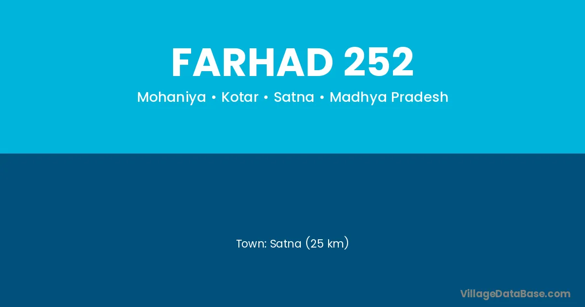 Satna (25 km) is the nearest town to Farhad 252 village for major economic activities and is located approximately 25 km away.