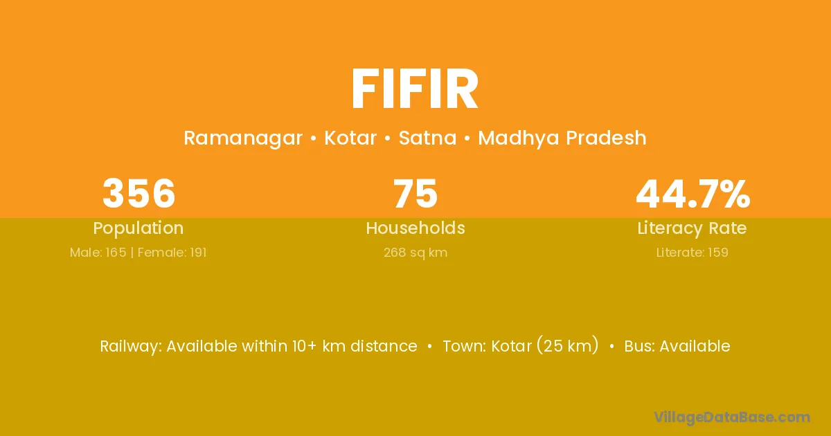 Kotar (25 km) is the nearest town to Fifir village for major economic activities and is located approximately 25 km away.