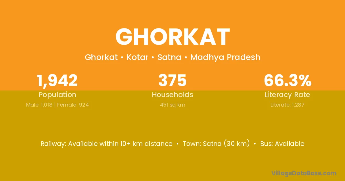 Satna (30 km) is the nearest town to Ghorkat village for major economic activities and is located approximately 30 km away.