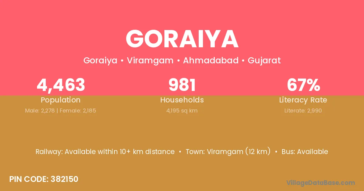 There are approximately 972 households in Goraiya village.
