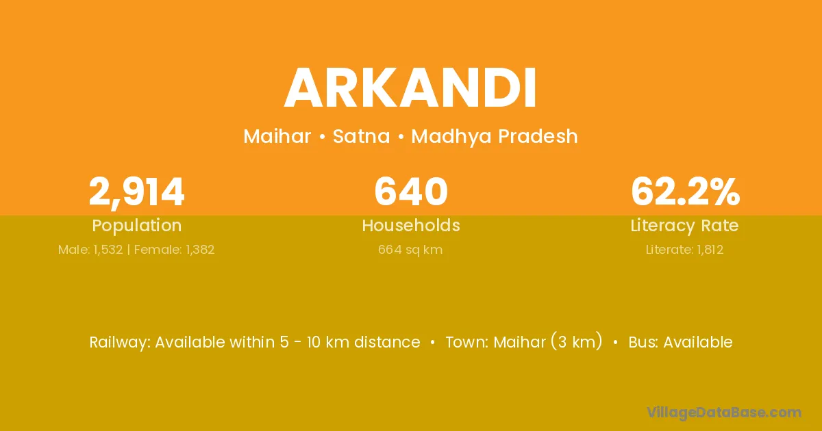 Maihar (3 km) is the nearest town to Arkandi village for major economic activities and is located approximately 3 km away.