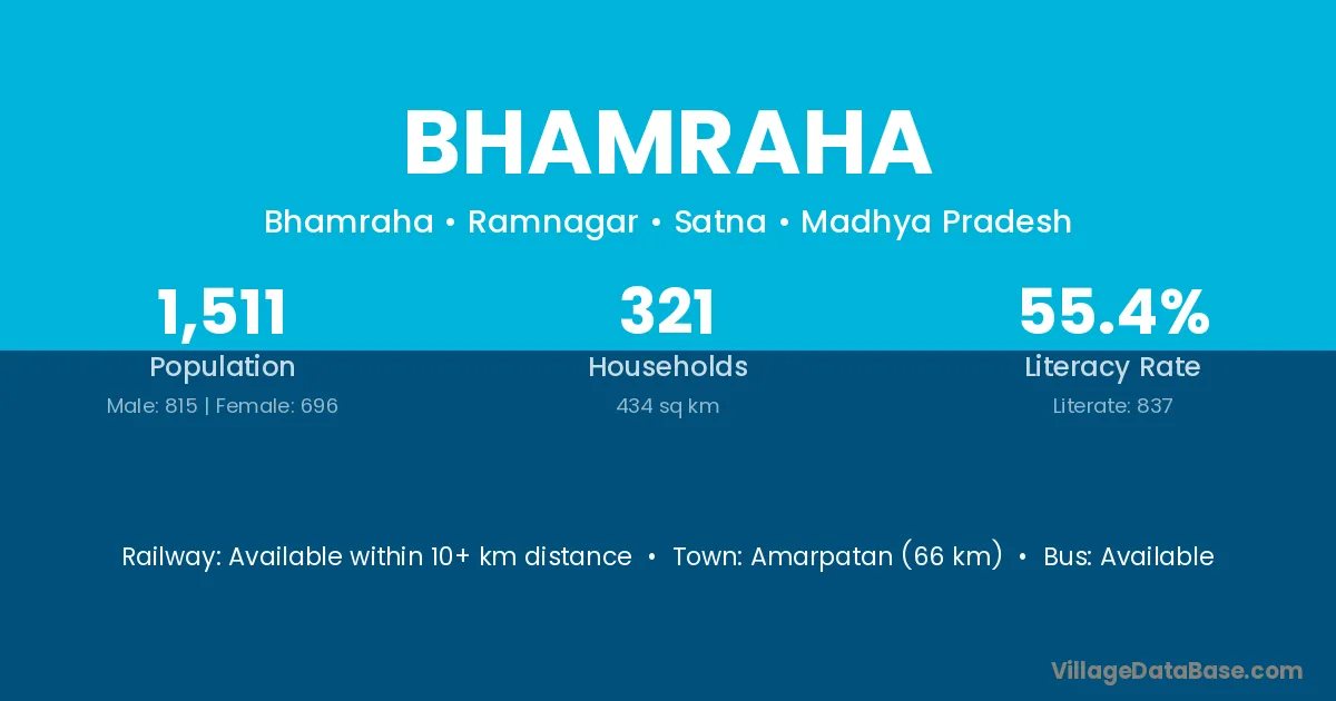 Maihar (16 km) is the nearest town to Bhamraha village for major economic activities and is located approximately 16 km away.