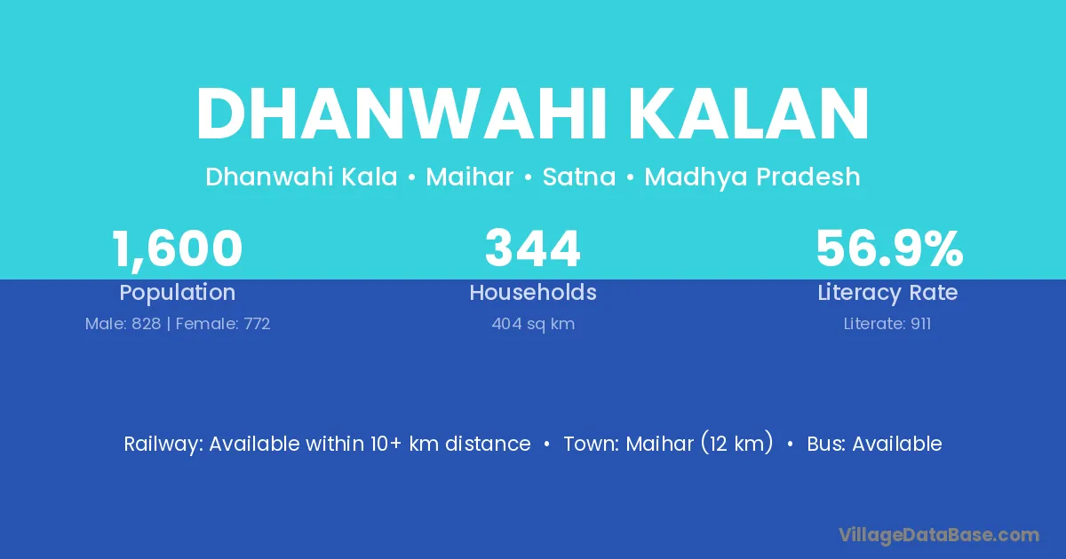 Maihar (12 km) is the nearest town to Dhanwahi Kalan village for major economic activities and is located approximately 12 km away.