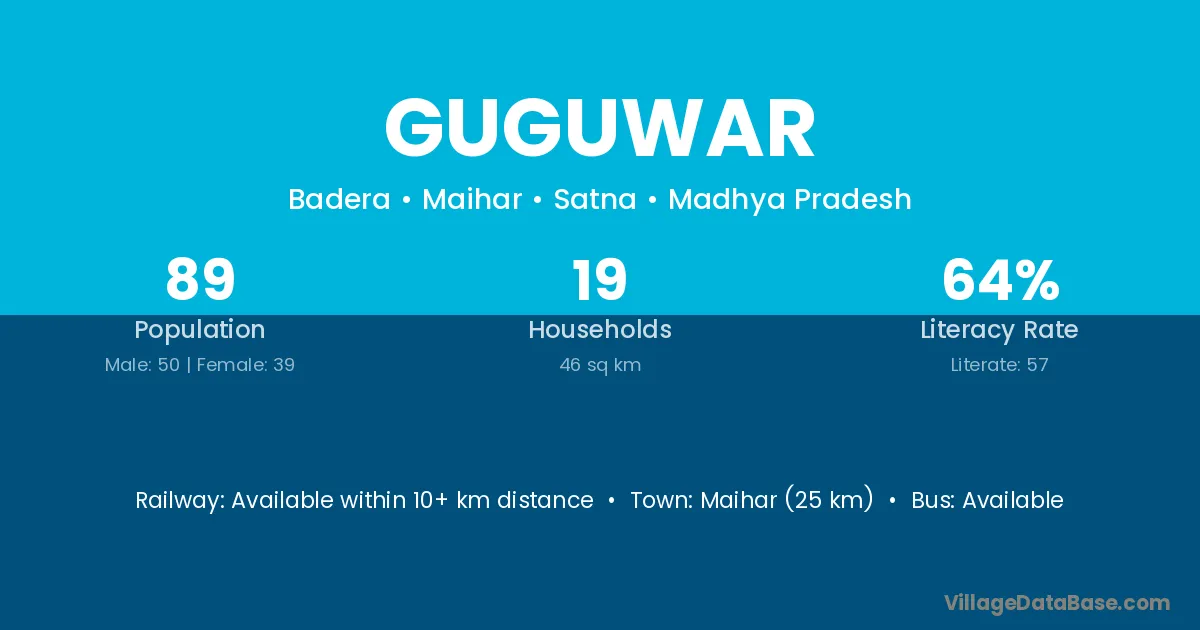 Maihar (25 km) is the nearest town to Guguwar village for major economic activities and is located approximately 25 km away.