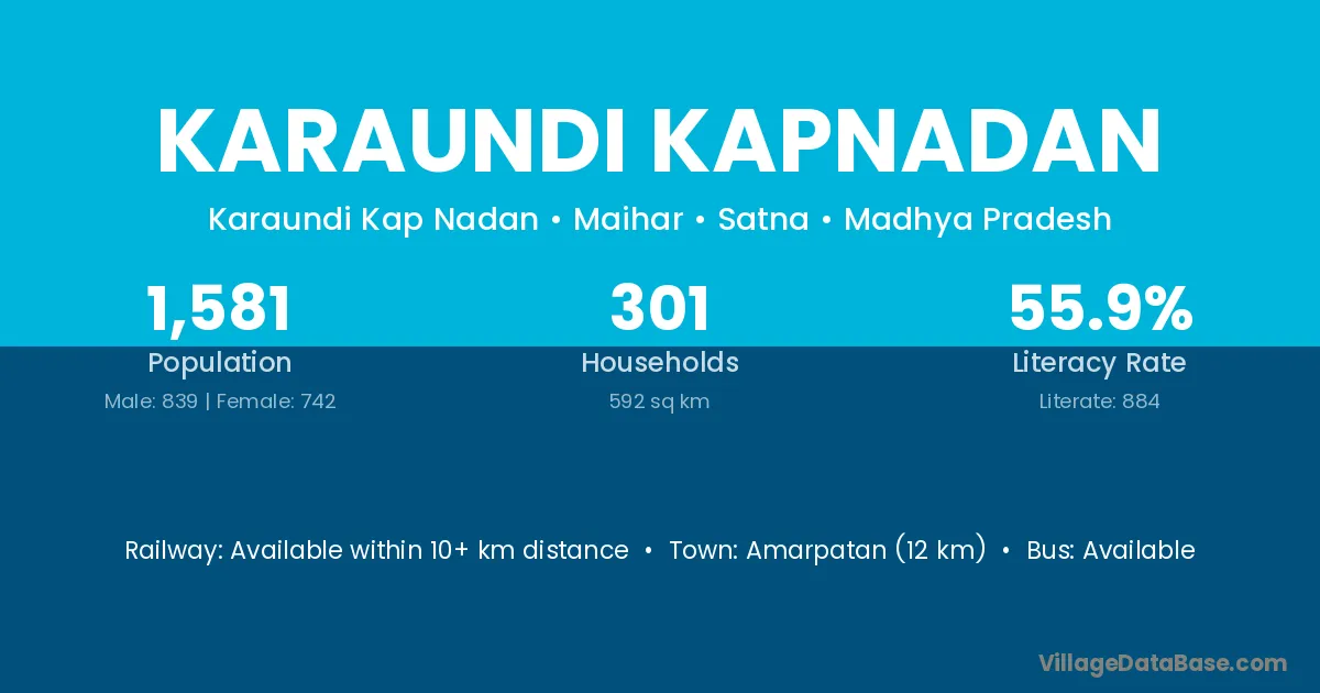 Karaundi Kapnadan village has a total population of 1,581 people, of which 839 are males and 742 are females.