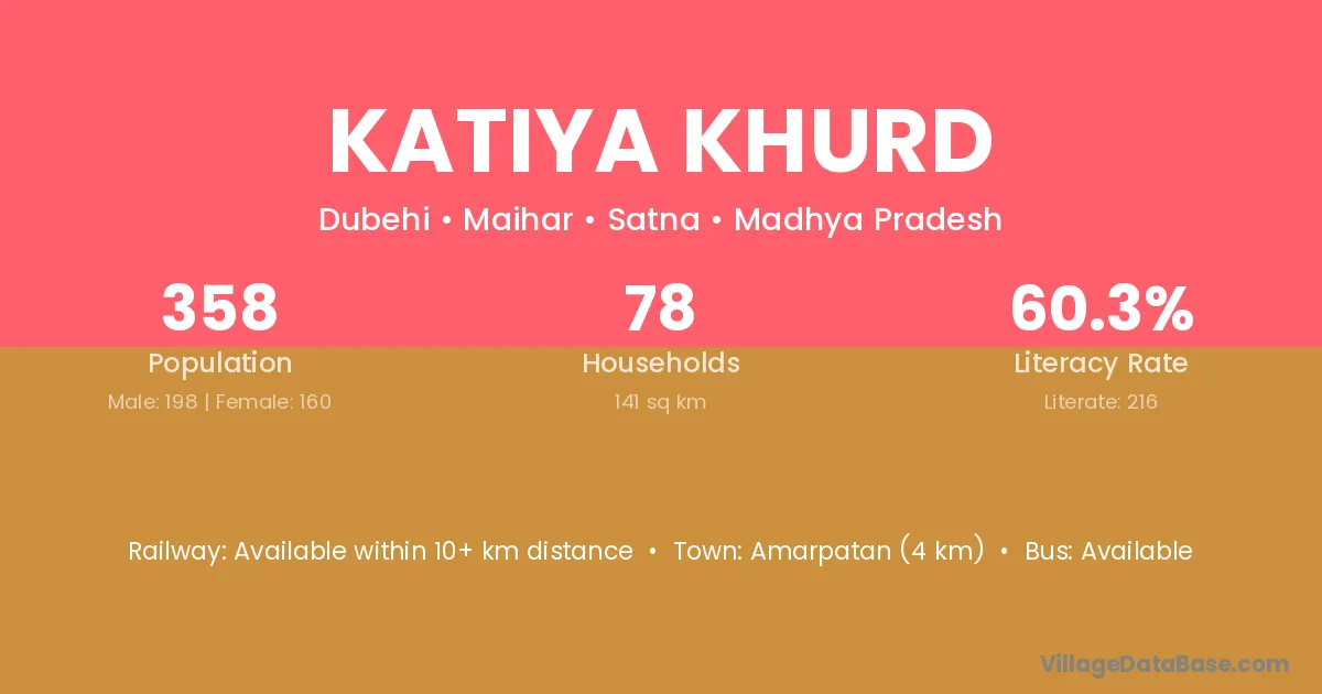 Katiya Khurd village has a total population of 358 people, of which 198 are males and 160 are females.