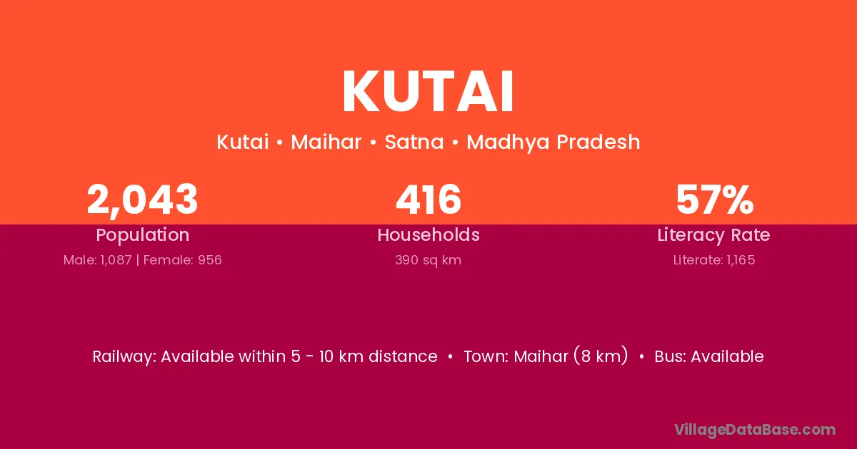 Maihar (8 km) is the nearest town to Kutai village for major economic activities and is located approximately 8 km away.