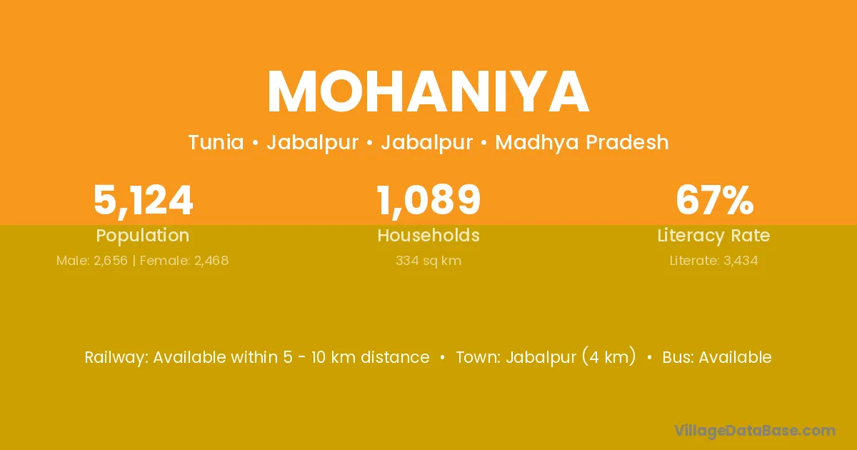 Maihar (25 km) is the nearest town to Mohaniya village for major economic activities and is located approximately 25 km away.