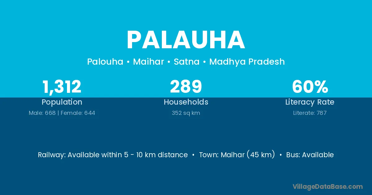 Maihar (45 km) is the nearest town to Palauha village for major economic activities and is located approximately 45 km away.