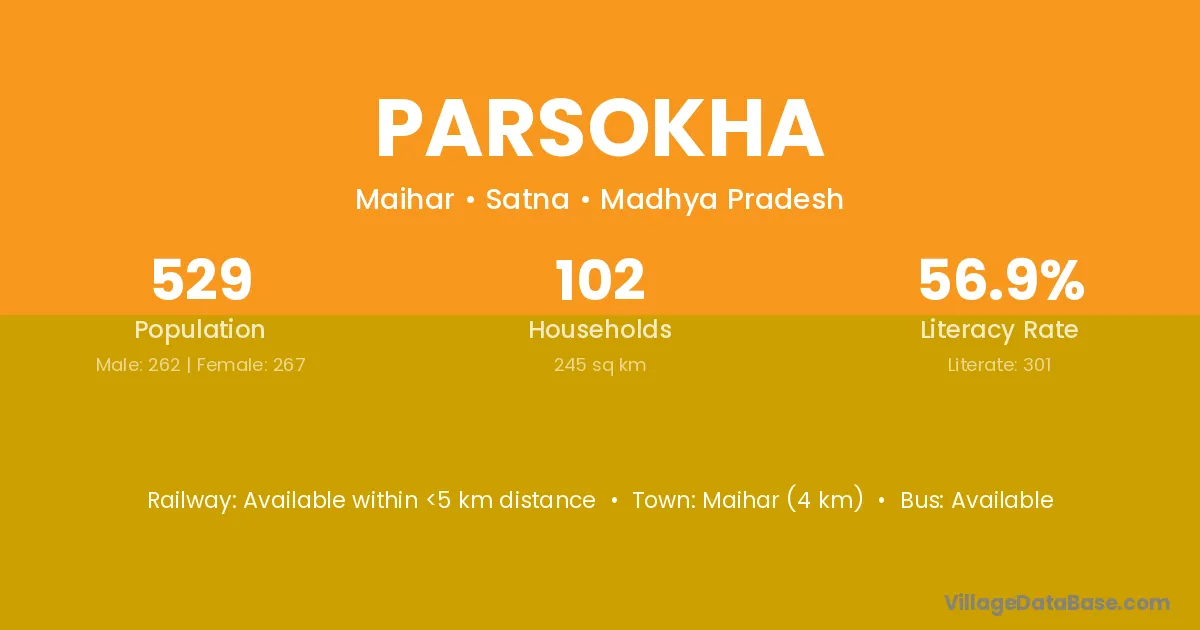 Maihar (4 km) is the nearest town to Parsokha village for major economic activities and is located approximately 4 km away.