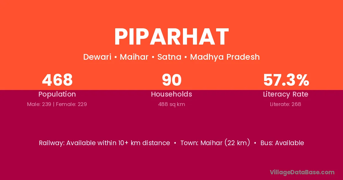 Maihar (22 km) is the nearest town to Piparhat village for major economic activities and is located approximately 22 km away.