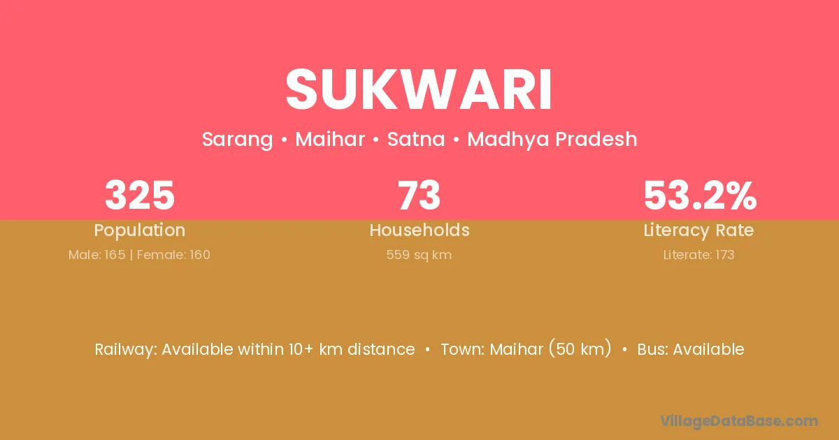 Maihar (50 km) is the nearest town to Sukwari village for major economic activities and is located approximately 50 km away.