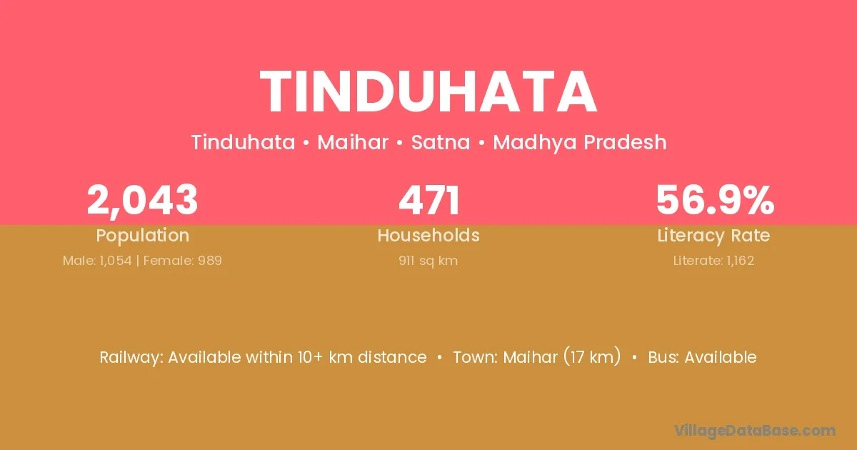 Maihar (17 km) is the nearest town to Tinduhata village for major economic activities and is located approximately 17 km away.