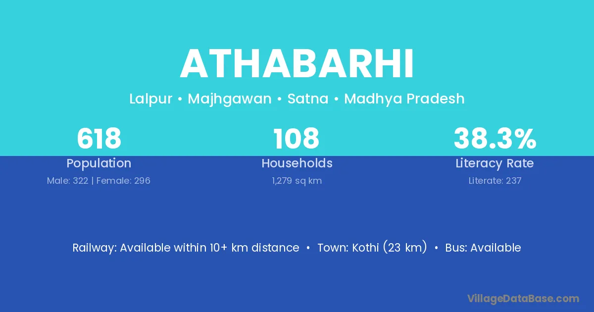 Kothi (23 km) is the nearest town to Athabarhi village for major economic activities and is located approximately 23 km away.