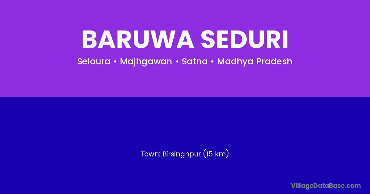 Birsinghpur (15 km) is the nearest town to Baruwa Seduri village for major economic activities and is located approximately 15 km away.